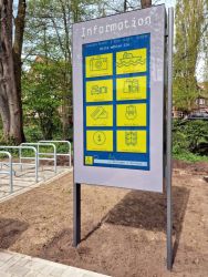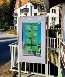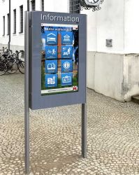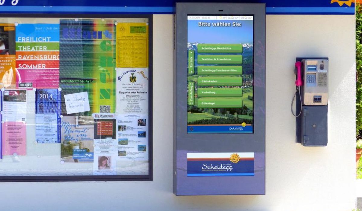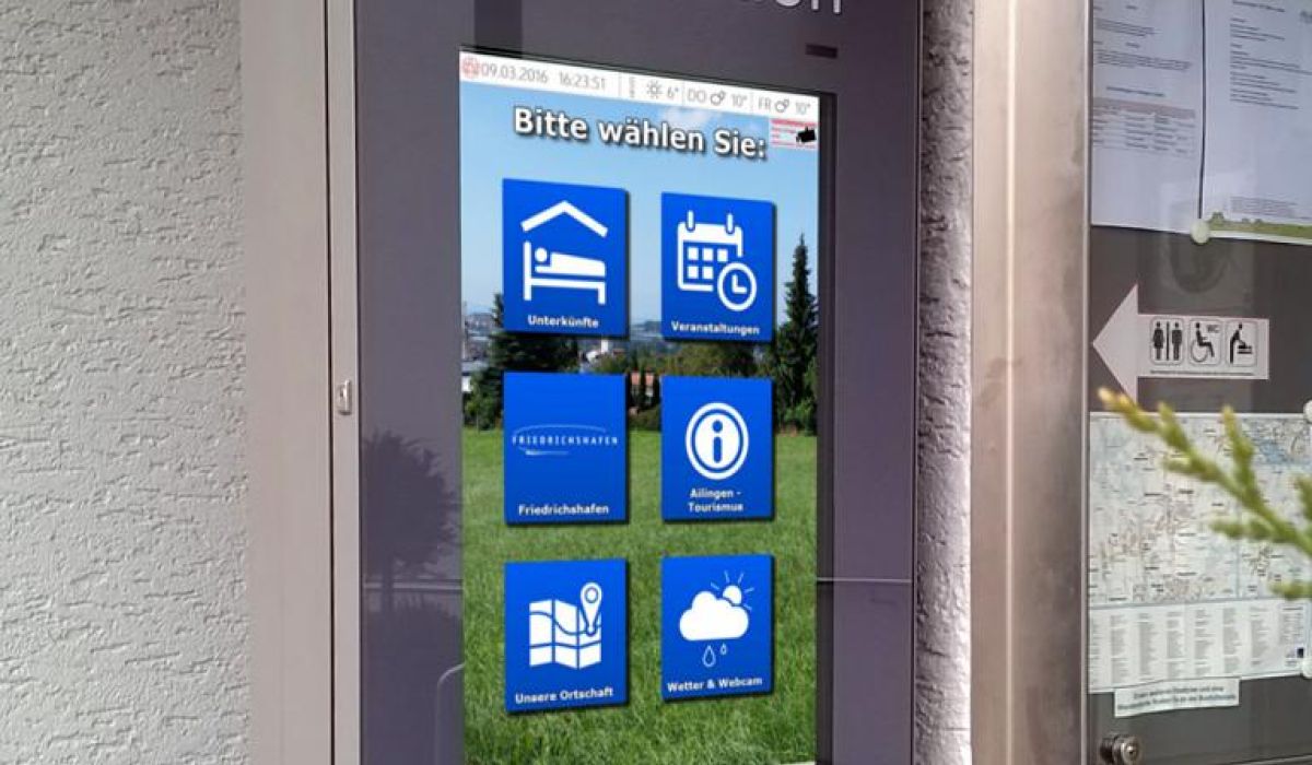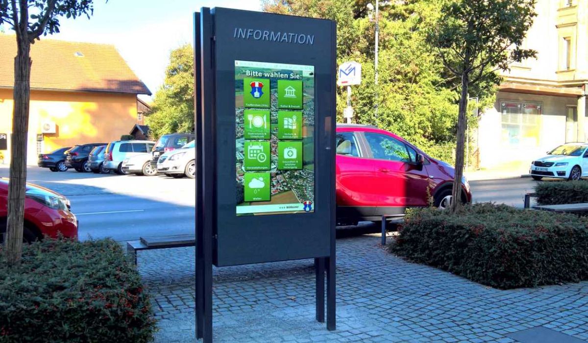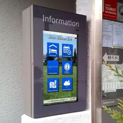 WEBtis ist ein bedienerfreundliches webbasierendes Informations-System für den Außen- und Innenbereich und greift auf bereits vorhandene Internetseiten des Ortes und Region zu.